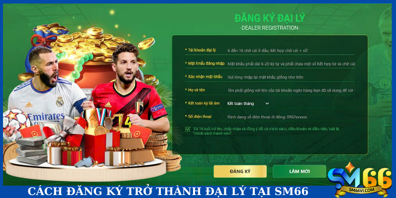 Để trở thành đại lý của SM66, đầu tiên anh em cần đăng ký tài khoản đối tác trên website chính thức. Quá trình đăng ký rất đơn giản và nhanh chóng. Sau khi đăng ký thành công, bạn sẽ nhận được các công cụ hỗ trợ marketing và liên kết để bắt đầu quảng bá dịch vụ của trang web.